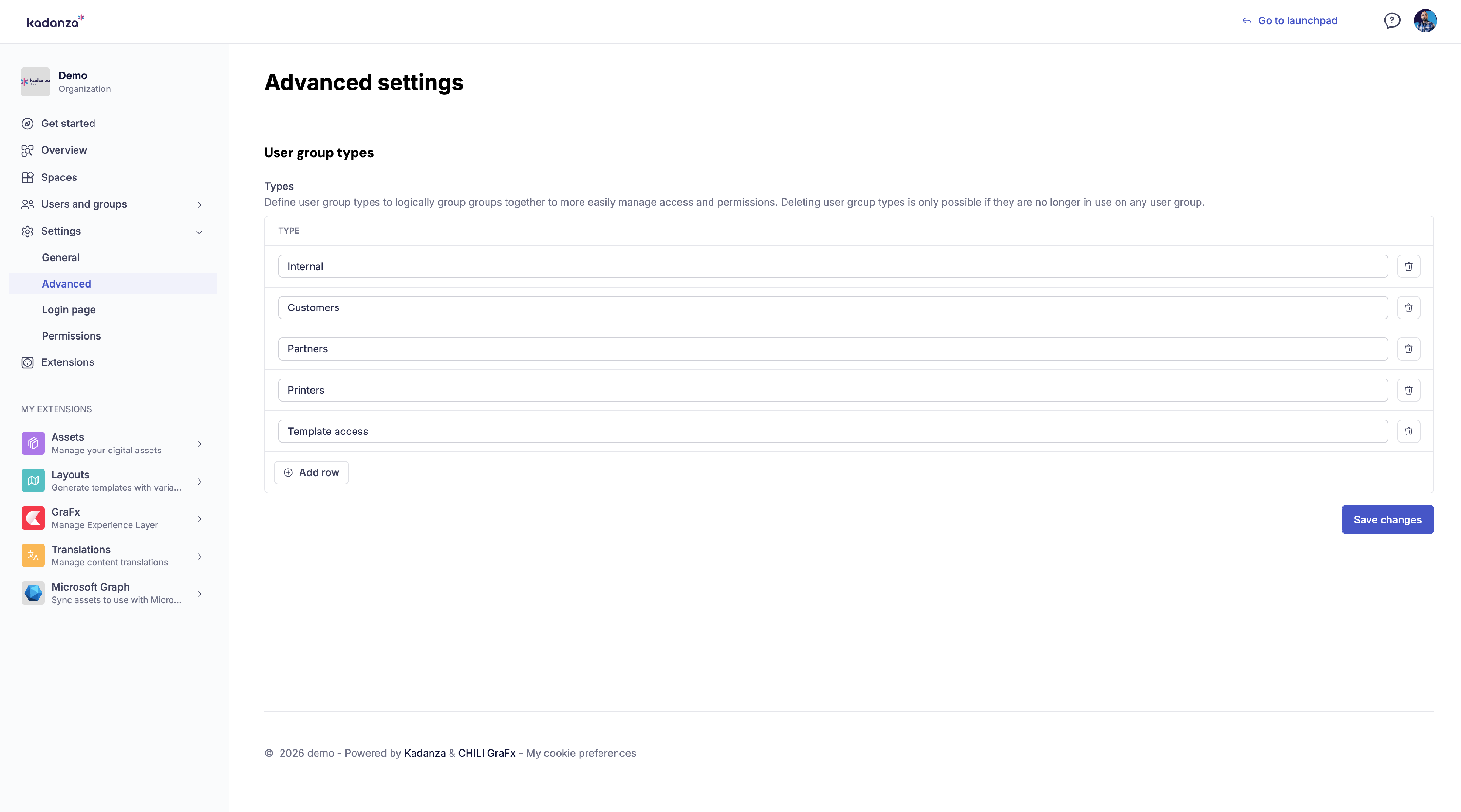 User group types are used to bring structure to your user groups. By defining a user group type, admins can bundle all user groups of this type and then use these group types while creating permissions and GraFx templates.
