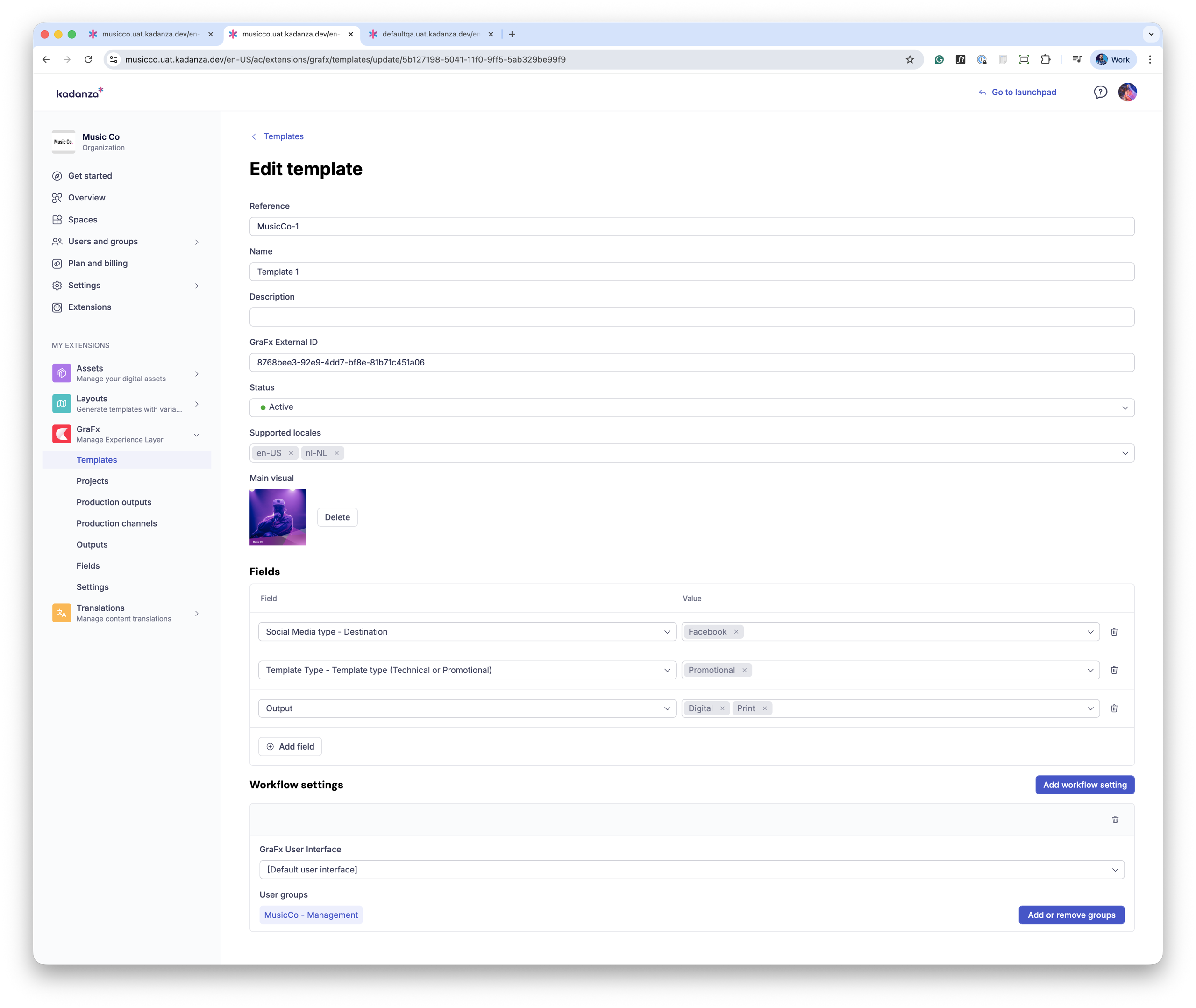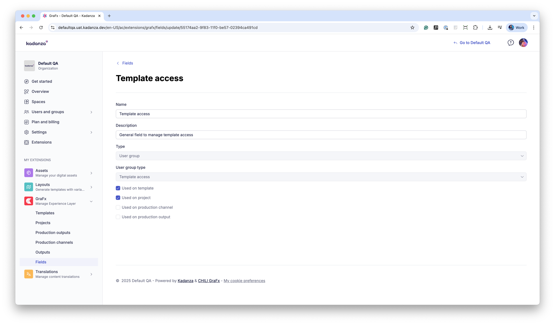 When the GraFx extension is enabled, admins can manage the configuration and settings in the Kadanza Admin Console.