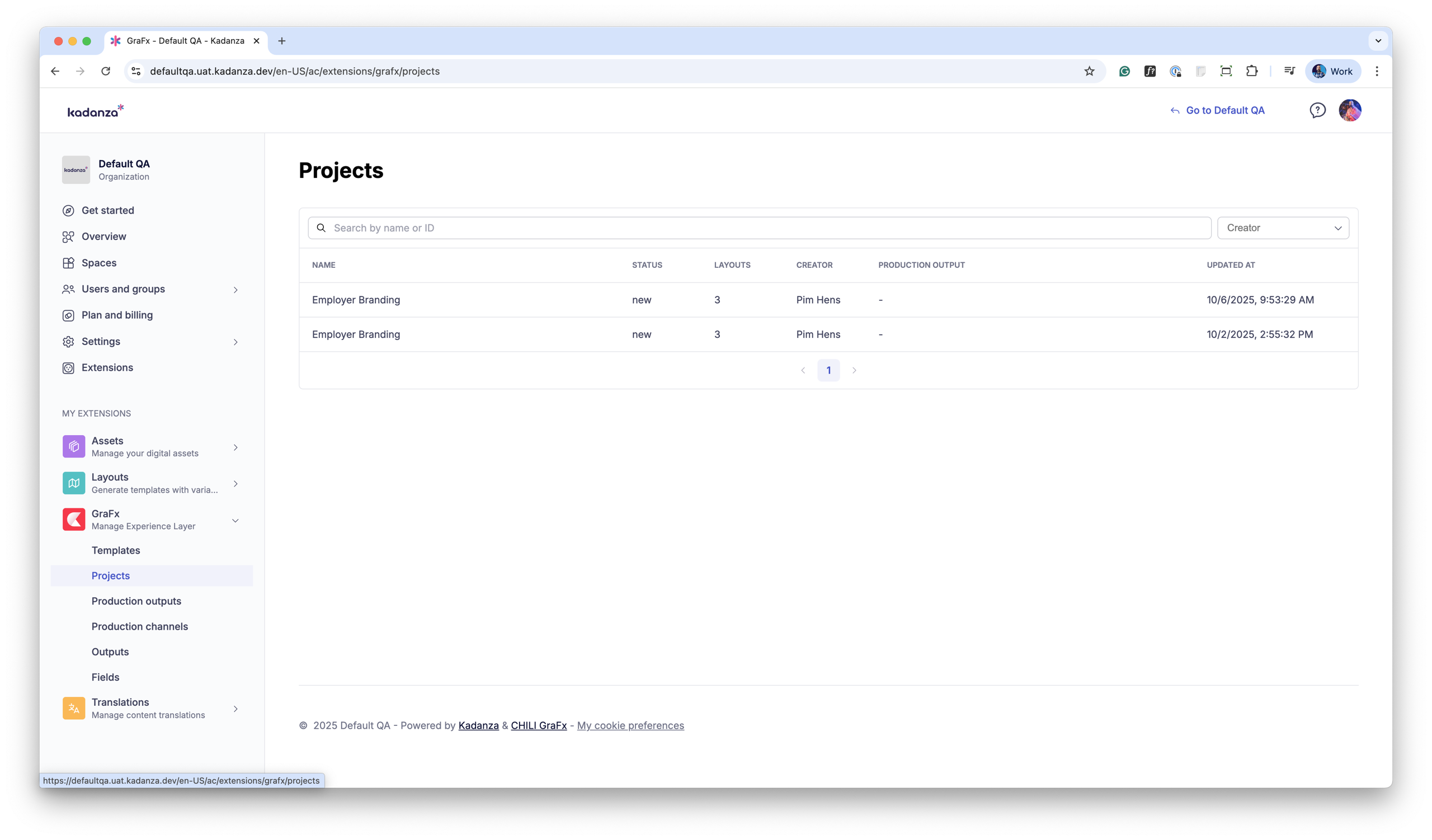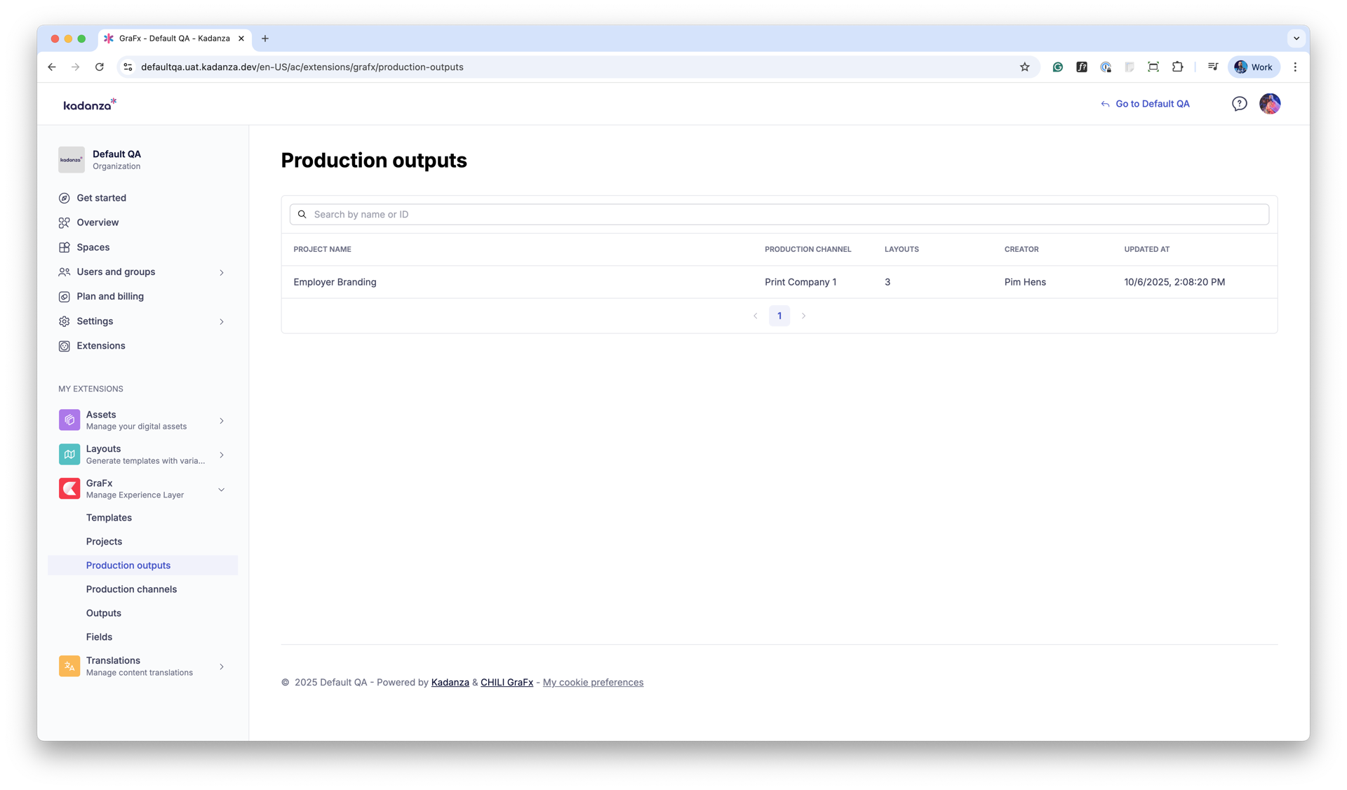 In the Production Outputs section, you see a list of all outputs created across projects (see screenshot 1).