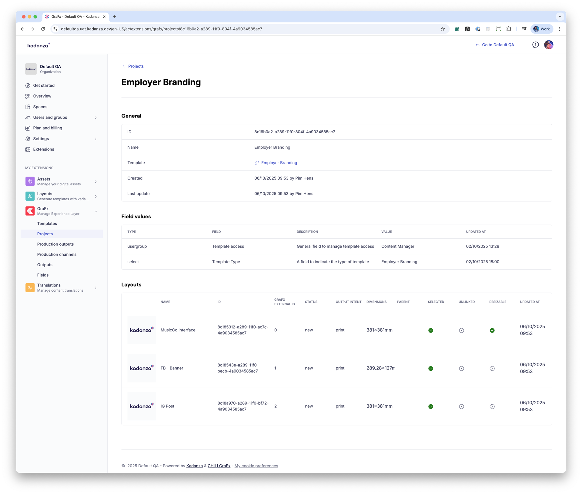 Projects are created by end-users based on templates. Each project bundles together one or more layouts, field values, and outputs. From the admin side, the Projects section allows you to monitor what users are creating, check configurations, and troubleshoot if needed.