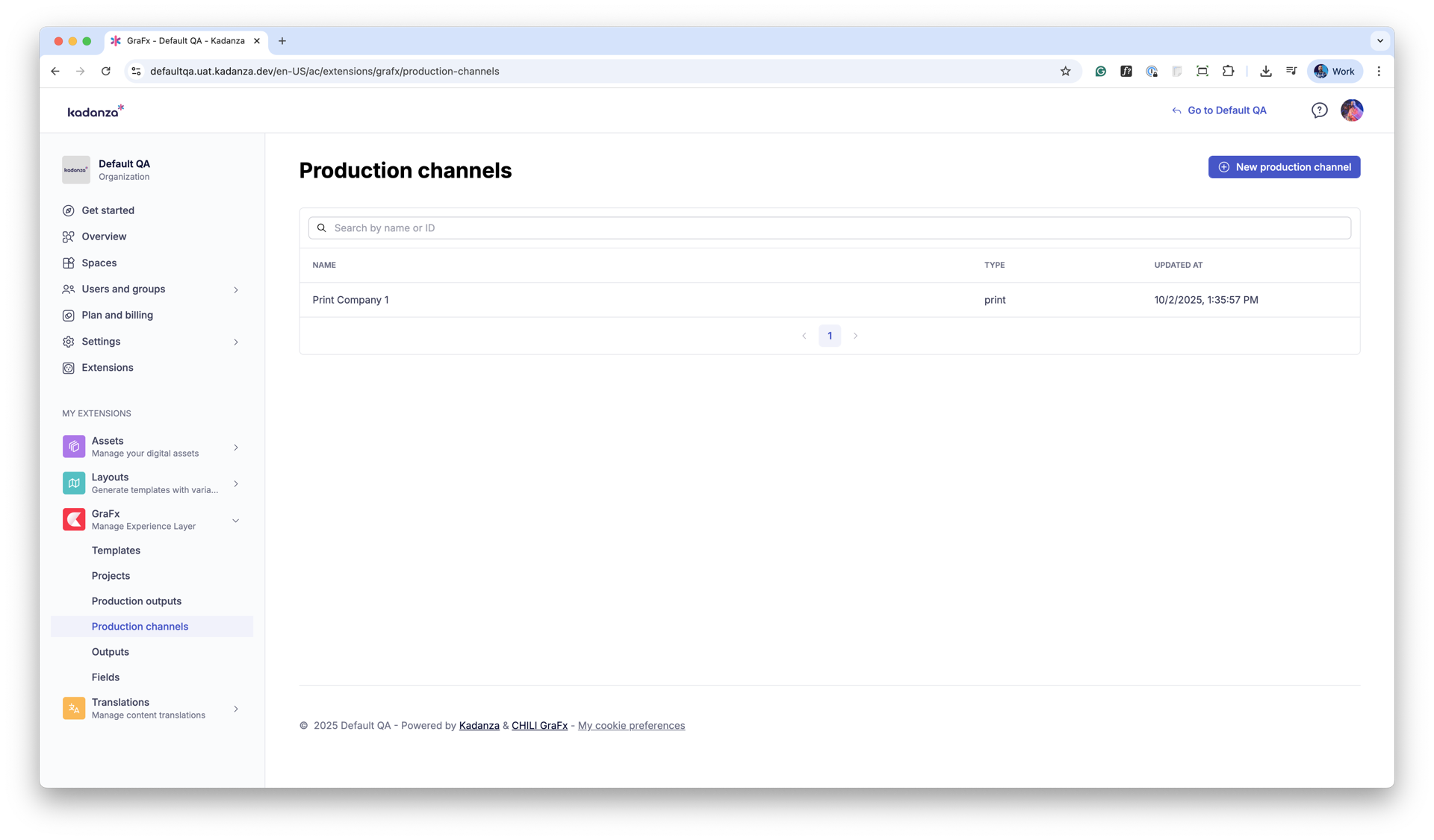 In the Production Channels section, you’ll see a list of all available channels.