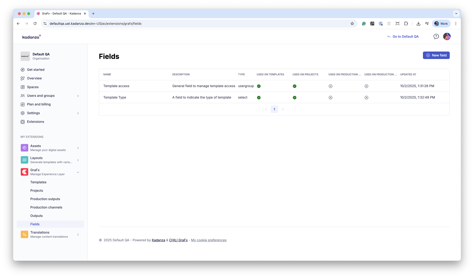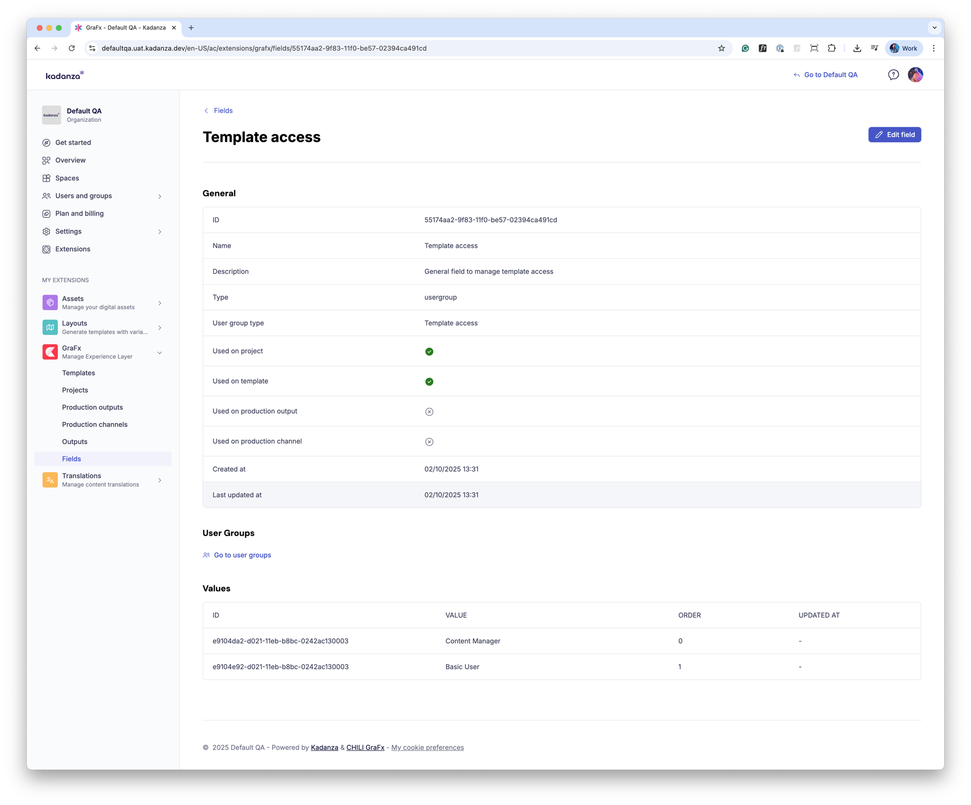- Indicators for where the field is used (templates, projects, outputs, or channels)