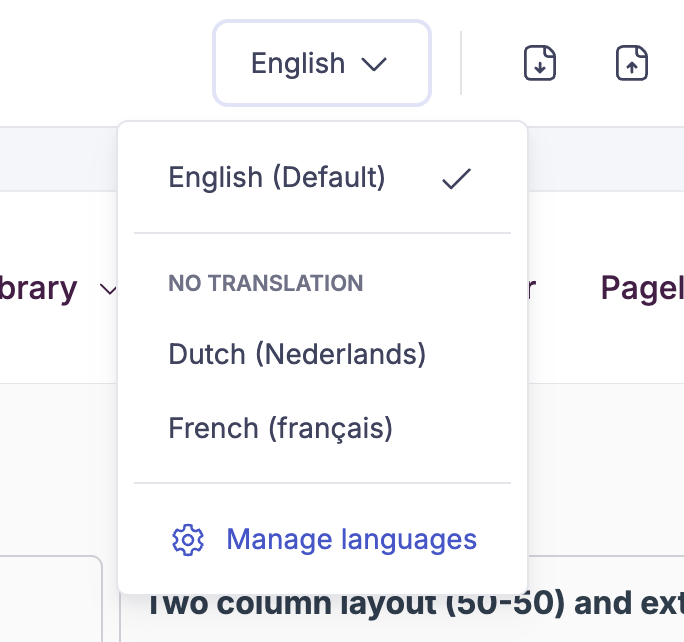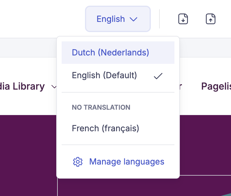 Translating page content is done in the editor. When are translated, they will become visible in the navigation. Untranslated pages are hidden and a user can revert to the default language to see the original content.